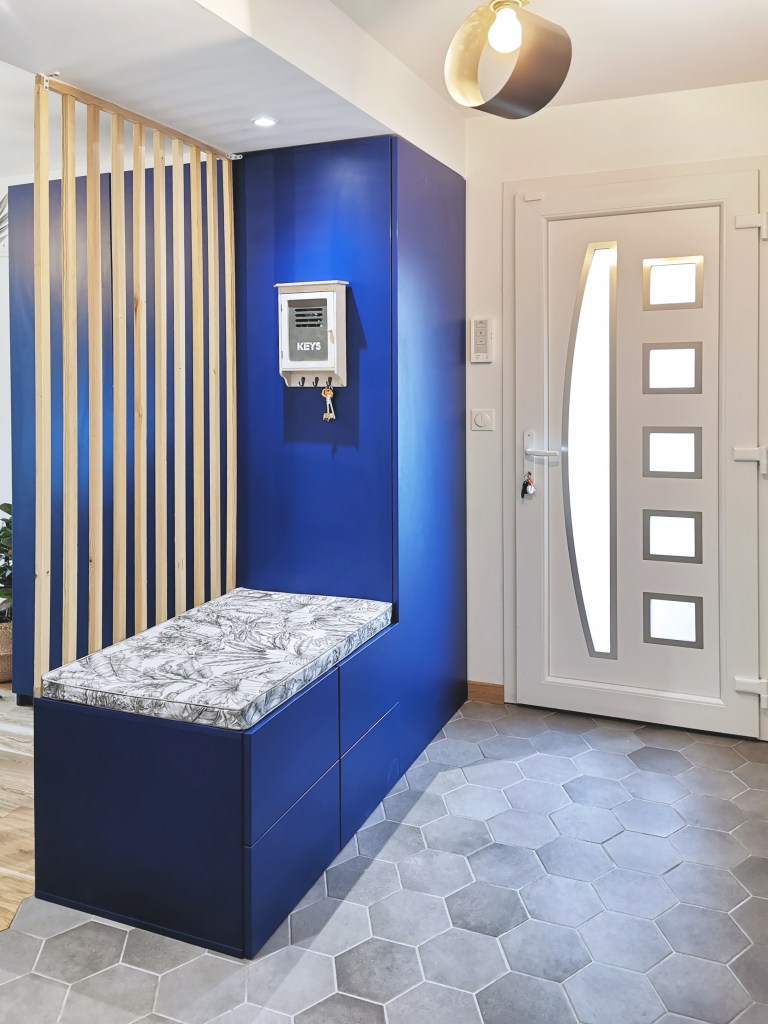 L’entrée a été optimisée en permettant une cohérence avec le projet global tout en apportant de la personnalité à ce lieu.